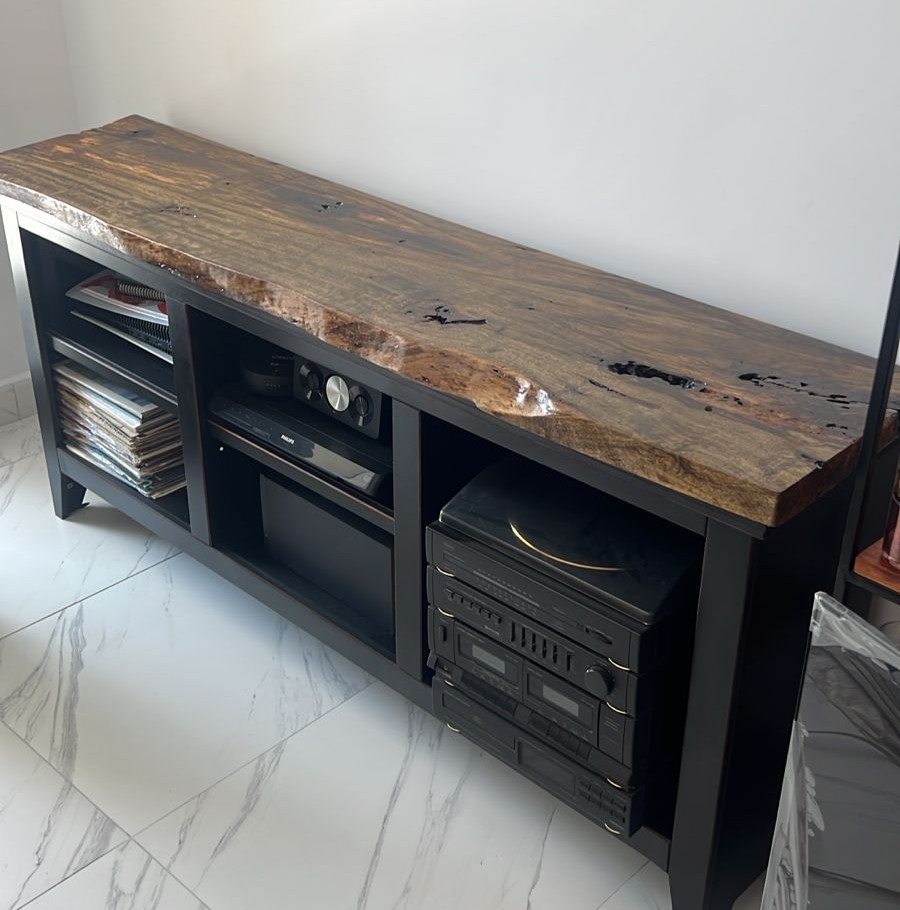 Transforme seu ambiente com um móvel que une rusticidade, sofisticação e funcionalidade. Este aparador exclusivo é feito com madeira canela seca de alta qualidade, valorizando a beleza natural das formas e texturas orgânicas da madeira.